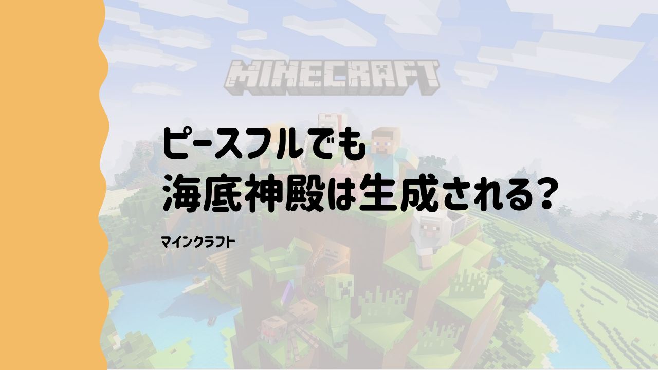 マインクラフトのピースフルモードで、海底神殿が生成されるのかや、ピースフルの場合に海底神殿で入手できないアイテムを紹介します。